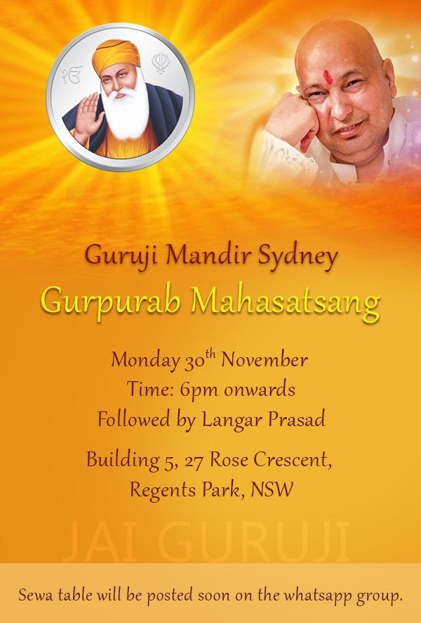 November 30, 2020 @ 6:00 PM - 8:30 PM UTC+10 Gurpurab Mahasatsang at Guruji Mandir Sydney Guruji Mandir Sydney 27 Rose Cres, Regents Park NSW 2144,, Sydney …